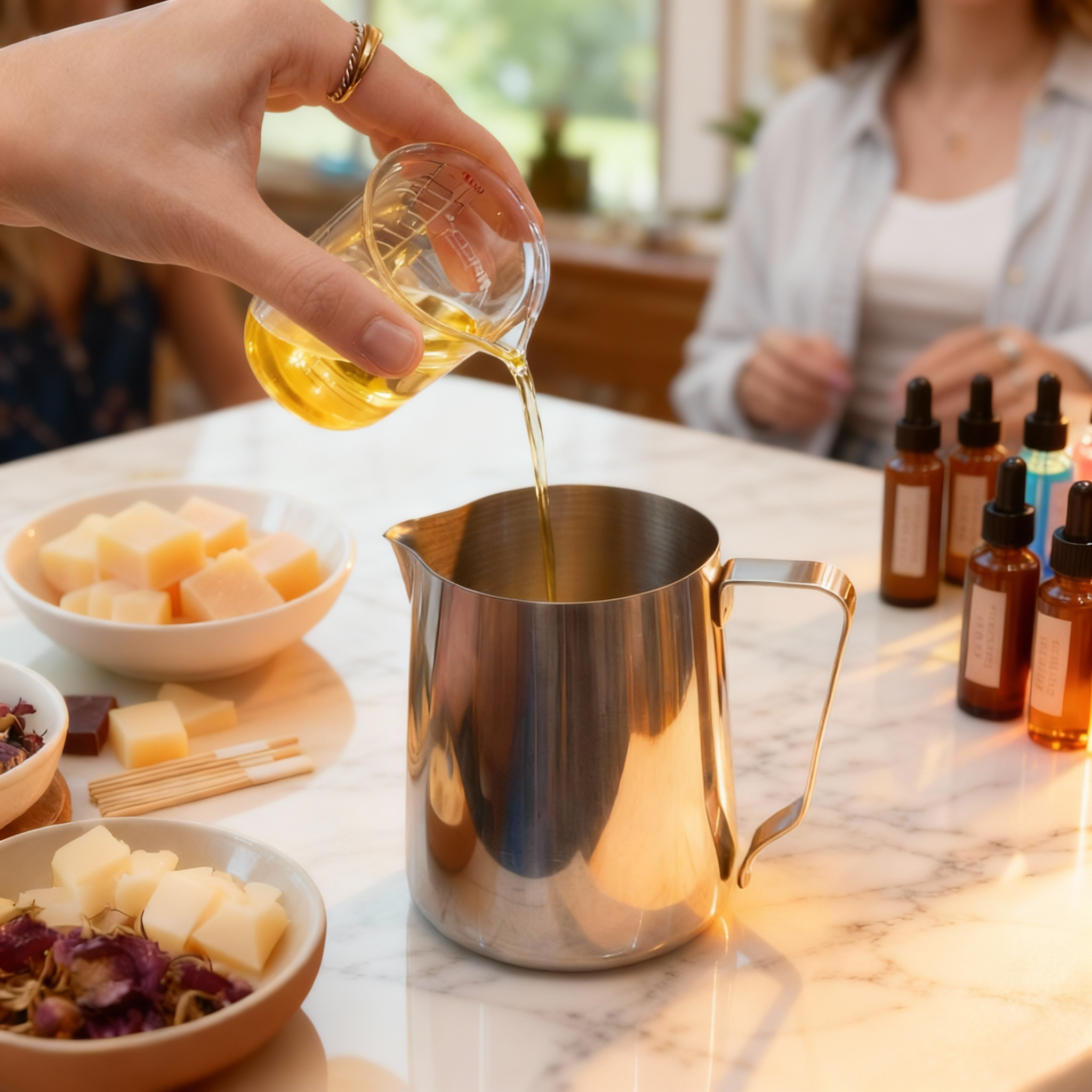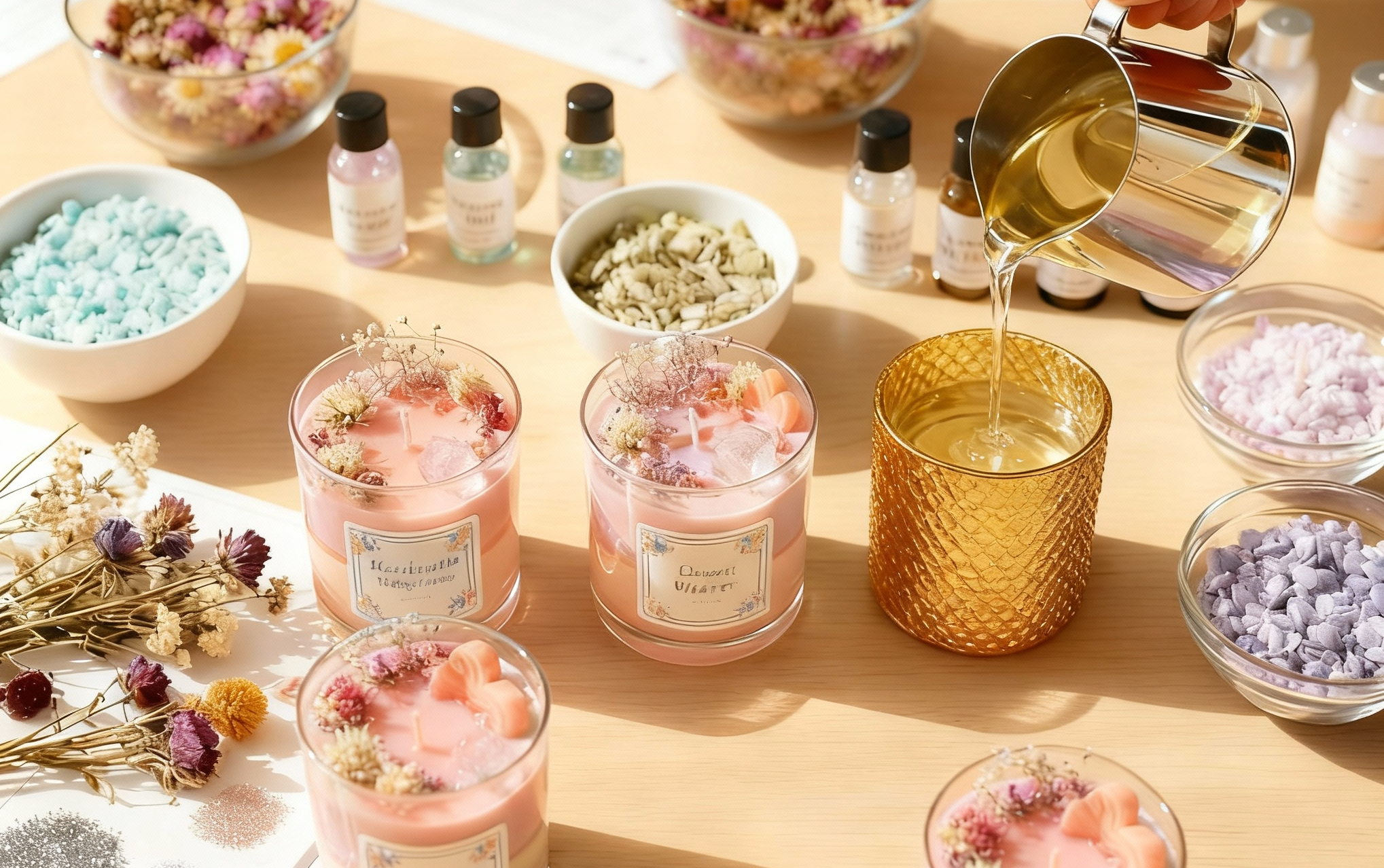 Your ticket includes everything you need — wax, scents, colors, jars, wicks, and accessories — plus your seat in the workshop. You’ll leave with your very own custom candle!
